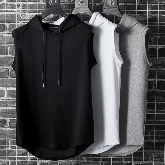 Summer Gym Tank Top Men Hooded Sleeveless Shirt Bodybuilding Top Fashion Hip Pop Vest Sweatshirt Fitness Singlets Man Clothing